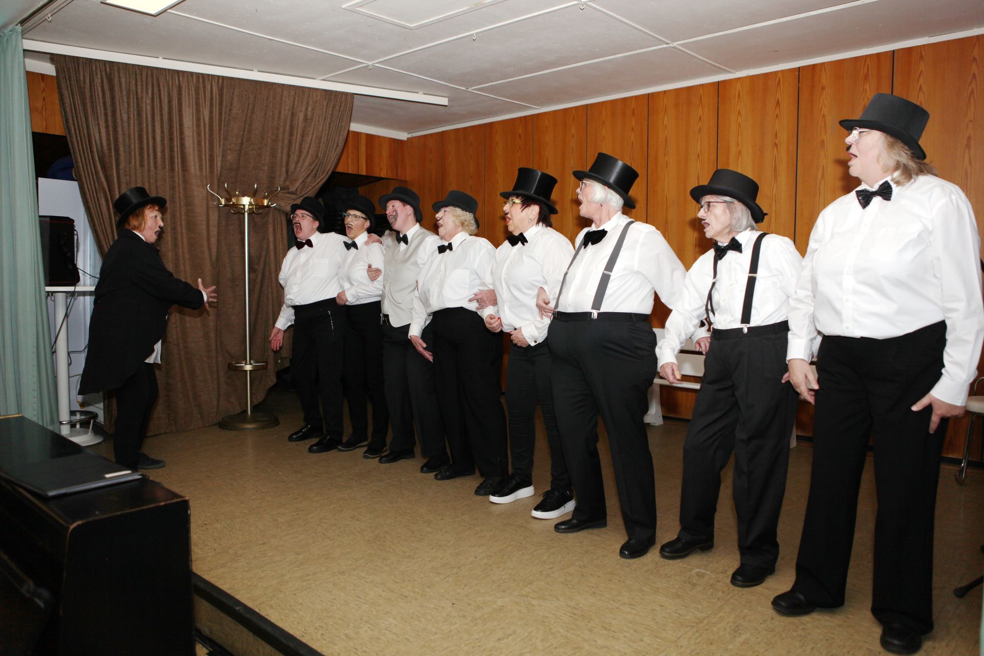 Es war ein kurzweiliger Abend, der mit vielen Auftritten der Sänger (unterstützt von den Sängerfreunden aus Honrath), der Ehefrauen der Sänger und der Damen des Frauenchores „Harmonie“ aus Honrath das Publikum begeisterte.
